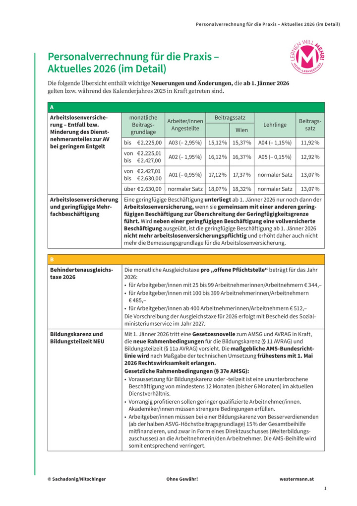 Personalverrechnung für die Praxis - Aktuelles 2026 (im Detail)