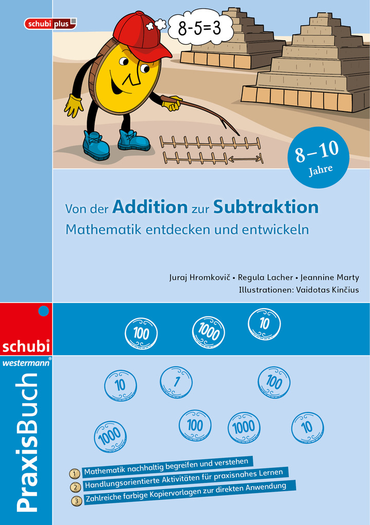 Der vierte Band unterstützt den Aufbau eines tragfähigen Verständnisses für Subtraktion und negative Zahlen. Durch das Vergleichen von Gegenständen und Grössen erkennen die Kinder zunächst die Notwendigkeit von Minus-Operationen. Darauf aufbauend beginnen sie mit einfachen Minus-Rechnungen und gelangen über das Rechnen in der Münzdarstellung Schritt für Schritt zur schriftlichen Berechnung von Differenzen. Anschliessend entdecken sie den praktischen Nutzen negativer Zahlen – etwa bei Temperaturangaben, Kontoständen oder Positionsänderungen im Raum – und lernen, Minus-Rechnungen mit negativen Ergebnissen auszuführen.