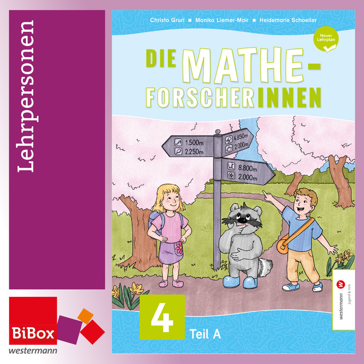Die Mathe-Forscher/innen 4 stehen für einen handlungsorientierten und entdeckungsfreudigen Unterricht. Viel Zeit wird dem Verstehen mathematischer Vorgänge gewidmet. Begleitet werden die Kinder von der Leitfigur Mati dem Waschbären und den Kindern Moni und Max.