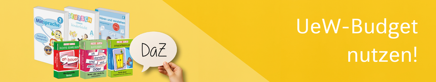 Entdecken Sie hier unsere Materialien, die als Unterrichtsmittel eigener Wahl (UeW) eingesetzt werden können. Das bedeutet für Sie: maximale Flexibilität bei der Auswahl, passgenau für Ihre Lerngruppe und Ihre Unterrichtsziele. Ob Wortschatzaufbau, Sprachverständnis, Satzbau oder mündliche Ausdrucksfähigkeit – unsere DaZ-Materialien unterstützen Sie dabei, sichtbare Sprachfortschritte zu erzielen.